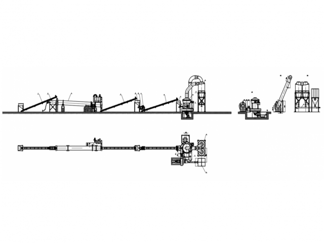 Производительность: 50–180 т/ч Габариты в транспортном положении (Д×Ш×В): 13 500 × 2 550 × 4 800 мм Общий вес комплекса: около 30 тонн Суммарная установленная мощность: 103 кВт